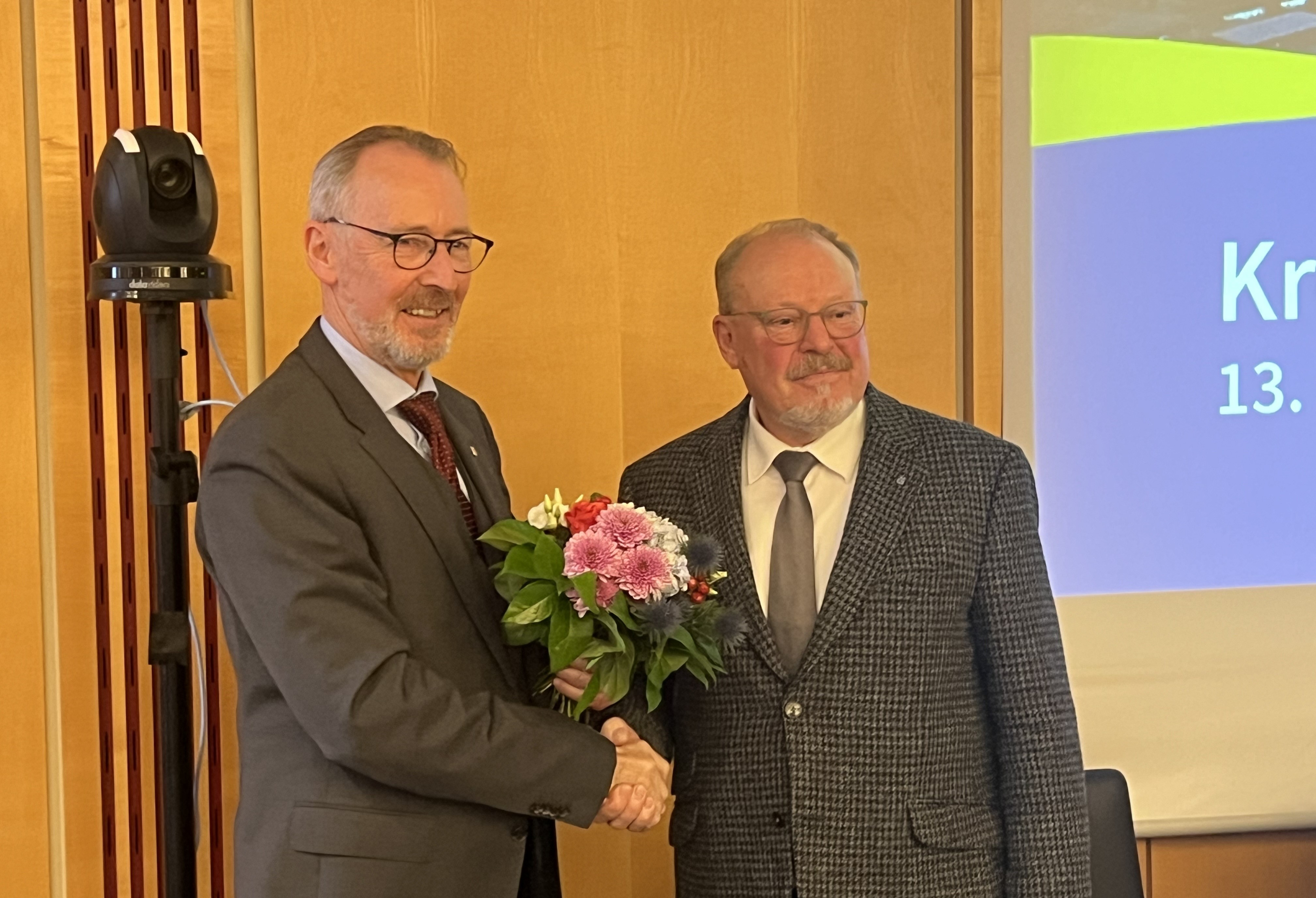 Nach 2 Wahlperioden stellte sich Landrat Dr. Wolfgang Buschmann wieder zur Wahl und wurde mit überzeugender Mehrheit (47 Ja-Stimmen, 10 Enthaltungen) erneut zum Landrat gewählt. Wir freuen uns auf die weiterhin vertrauensvolle und kollegiale Zusammenarbeit.